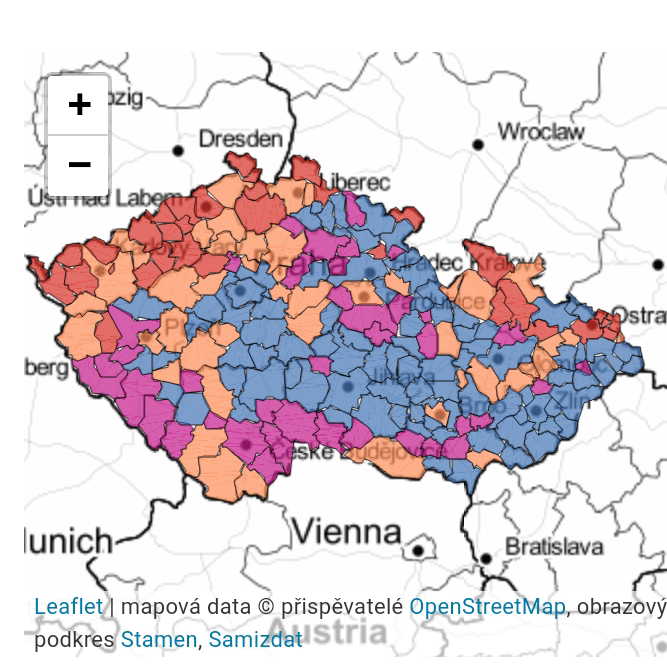 Na interaktivní mapě se můžete podívat, jak se socioekonomické problémy kombinují v jednotlivých obcích. Sociologové 206 obcí s rozšířenou působností rozdělili do čtyř kategorií.