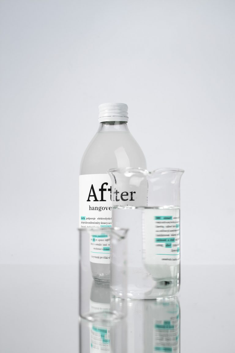 Produkt After? Nealkoholický ochucený nápoj s citrónovou chutí a s vysokým obsahem vitamínů a minerálů pro „těžká rána“