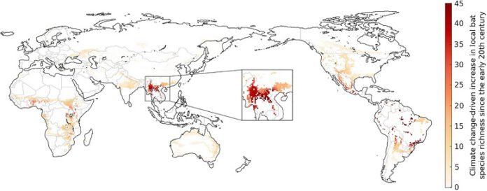Aby vědci zjistili, jak mohly takové koronavirové hotspoty vzniknout, rekonstruovali prostřednictvím klimatických dat celosvětovou přirozenou vegetaci k začátku posledního století. Na tomto základě vypočítali tehdejší globální rozšíření netopýřích druhů a tento stav porovnali s jejich současným rozložením. Výsledek: životní prostor netopýrů se v jižní Číně výrazně zvětšil.