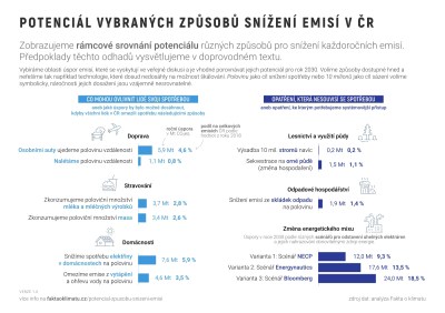 Můžeme to popsat na příkladu. Když si vezmu grafiku Potenciál vybraných způsobů snížení emisí v České republice, kde srovnáváte, jaký dopad na snížení emisí může mít změna chování jednotlivce a jaký změny systémové, co všechno za ní je od momentu, kdy se rozhodnete, že pokryjete právě tohle téma?