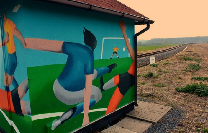 Když se na omšelém železničním domku u hlavní silnice z Hlinska na Svitavy objevila malba s fotbalovým hřištěm, brankou a hráči při hře, v obci s přibližně čtrnácti sty obyvateli to vzbudilo údiv. Jen pár stovek metrů od přejezdu je totiž fotbalové hřiště, kde se hraje okresní přebor.