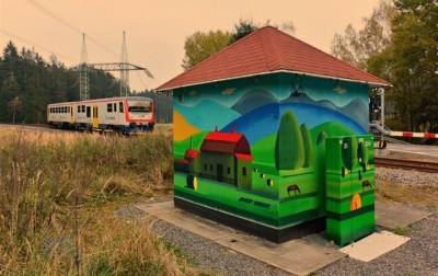 Nejdříve vypadaly dva sprejem pomalované domky u železničních přejezdů nedaleko Krouny jako akce šikovných sprejerů, kteří hledali jen čisté zdi, na kterých by se předvedli. Nakonec jde o dílo profesionálního grafika Dalibora Vybírala, který dělá železničářům street art „na klíč“.