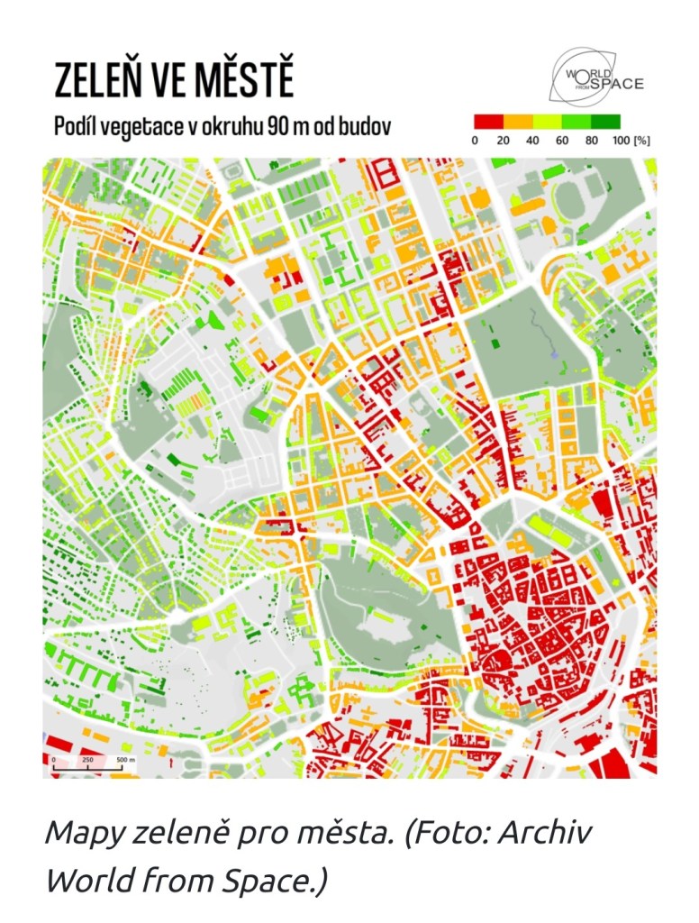 Brněnský startup World from Space dokáže pracovat se složitými daty z družic. Pozná z nich, kde je moc sucho, kde roste málo zeleně nebo kde je příliš velké znečištění vzduchu. A tak poradí farmářům, že na protějším kopci jim obilí poroste lépe než na původním místě, protože tam panuje lepší klima. Nebo městům ukáže, kde mají obnovit potoky a vysázet zeleň, aby se tak nepřehřívala.