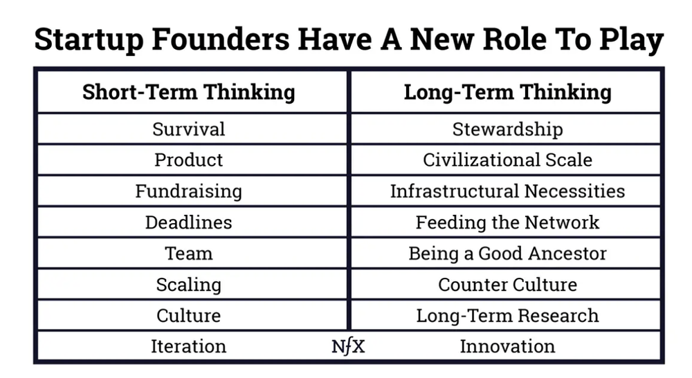 By necessity, Founders are rooted in the “here and now” mental framework required for launching a new startup. But *great* Founders do something different at the same time: They are obsessed with what will endure 10 or 50 years from now, vysvětluje VC fond NfX.