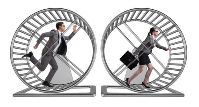 Viděli jste někdy křečka v běhacím kolečku? Čím rychleji utíká, tím víc se jeho dráha točí. Běží klidně celý den. Večer odpadne a ke svému úžasu zjistí, že oproti včerejšku nepopošel ani o píď. Je pořád na témže místě. Týden co týden. Měsíc co měsíc. Rok co rok.