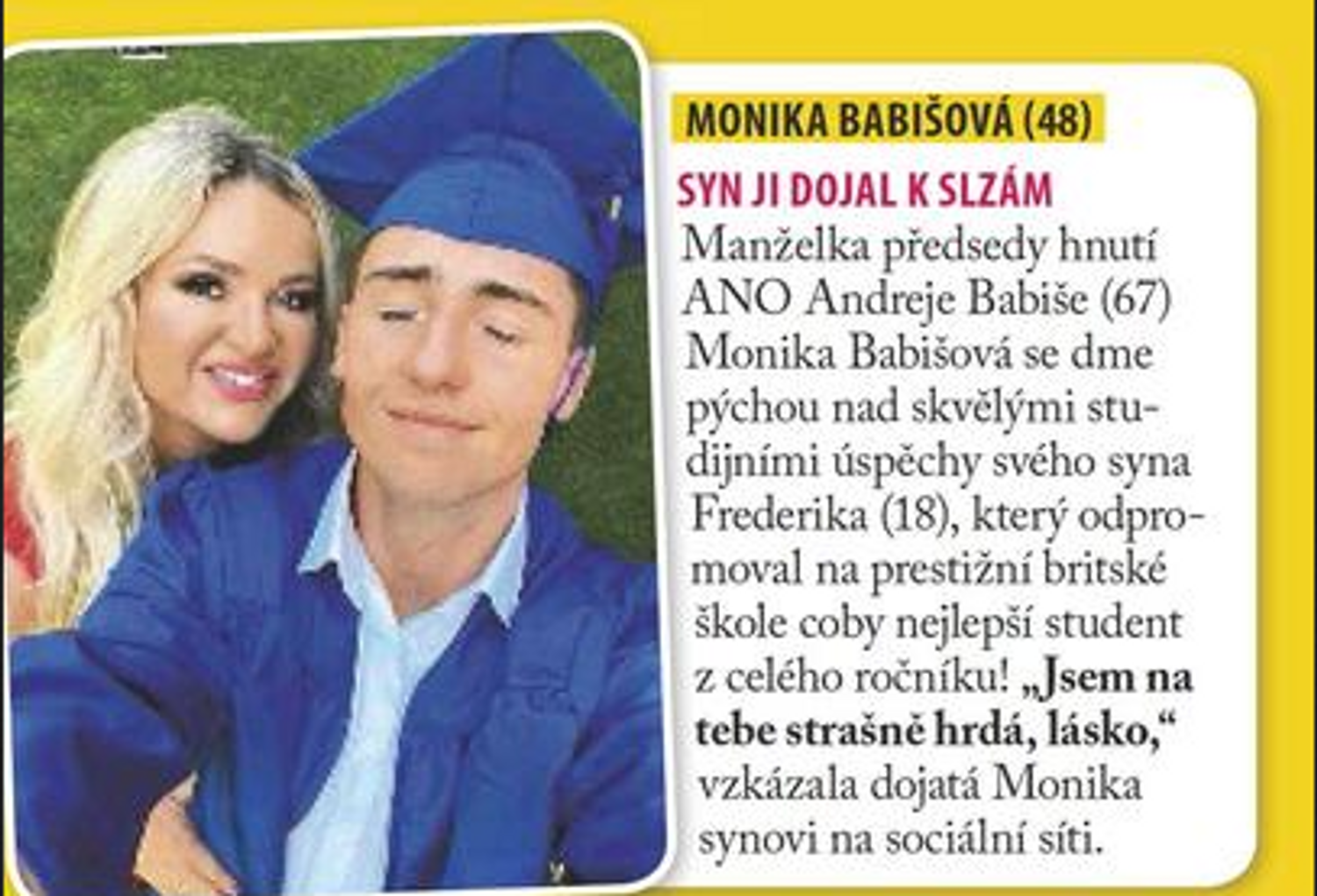 Maturitu expremiérova syna v superlativech popsal i další časopis Mafry s podobným lifestylovým zaměřením, Čas pro hvězdy: „Manželka předsedy hnutí ANO Andreje Babiše (67) se dme pýchou nad skvělými studijními úspěchy svého syna Frederika (18), který odpromoval na prestižní britské škole coby nejlepší student z celého ročníku.“