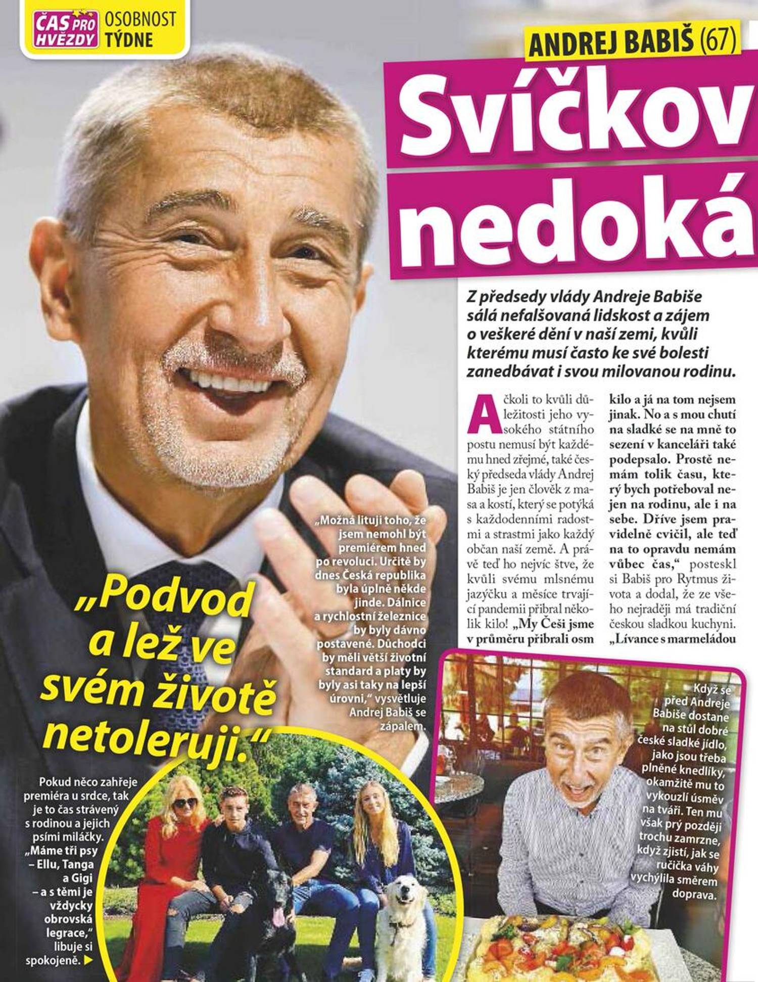 Vrchol adorace nabídly Babišovy časopisy čtenářům těsně před volbami v roce 2021. Příkladem je opět Čas pro hvězdy: „Z předsedy vlády Andreje Babiše sálá nefalšovaná lidskost a zájem o veškeré dění v naší zemi, kvůli kterému musí často ke své bolesti zanedbávat i svou milovanou rodinu.“ Podobně Pestrý svět: „Kvůli koronavirové pandemii i blížícím se volbám má Andrej Babiš (67) starostí nad hlavu. A kvůli nim si huntuje zdraví a zanedbává rodinu. Nyní přiznal, jak moc jej celá situace mrzí…“