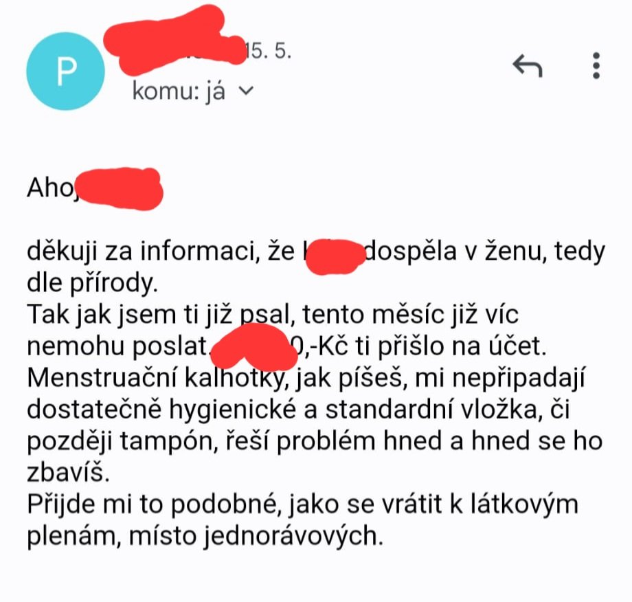 A jen pro info všem konzervativcům: I takhle vypadá menstruační chudoba. Když jako samoživitelka nemáte prostředky na to, aby vaše dítě menstruovalo tak, aby to bylo v rámci mezí pohodlné.