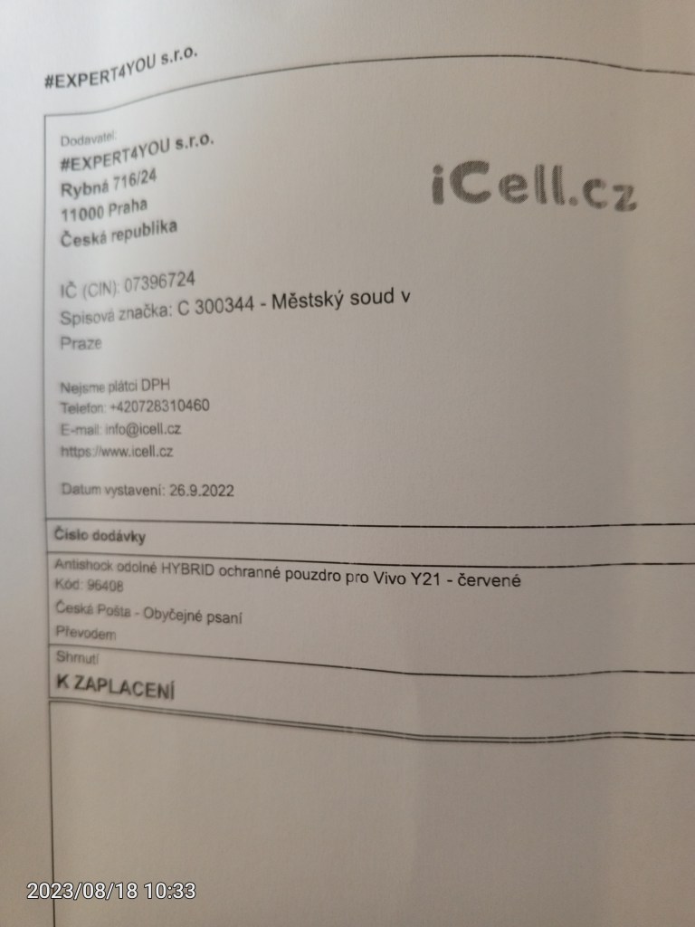 První zásilka: 18. 8. 2023 (jeden produkt ze tří!!!)