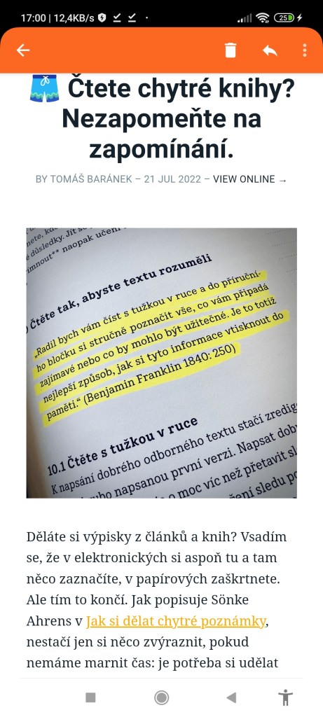 Jednak své poznámky můžete „ručně” procházet a editovat, ale největší přednost je v tom, že lze nastavit, aby vám některá vámi označená zvýraznění chodila pravidelně e-mailem (nebo jako notifikace do appky na mobil).