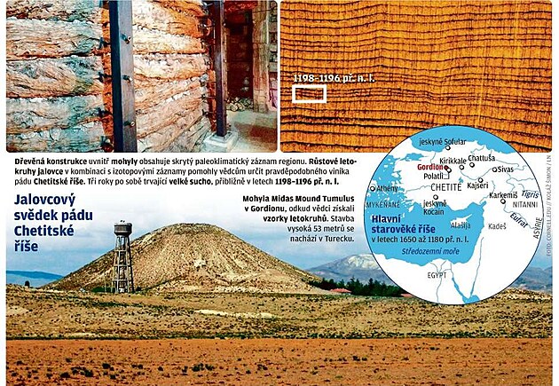 Srdcem říše Chetitů byla dnešní Anatolie. Manning a spol. využili k výzkumu tamějšího klimatu vzorky jalovcového dřeva z trámů nalezených v mohyle, jež se tyčí přes padesát metrů vysoko na místě zaniklého města Gordion. Jalovce rostou jen pomalu. Trámy z hrobky připisované otci bájného krále Midase pocházely ze stromů starých víc než tisíc let a nesou svědectví o počasí, jaké panovalo dávno před stavbou mohyly. Tým Sturta Manninga zjistil, že dřevo vzniklé na přelomu 12. a 13. století př. n. l. má nápadně úzké letokruhy.
